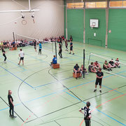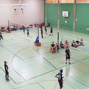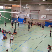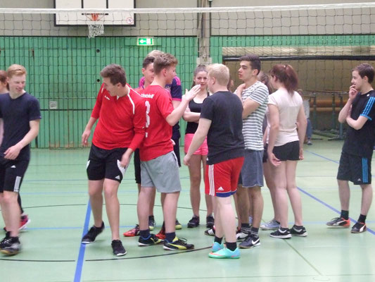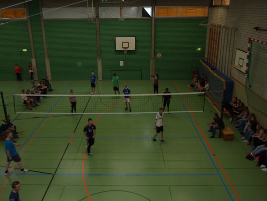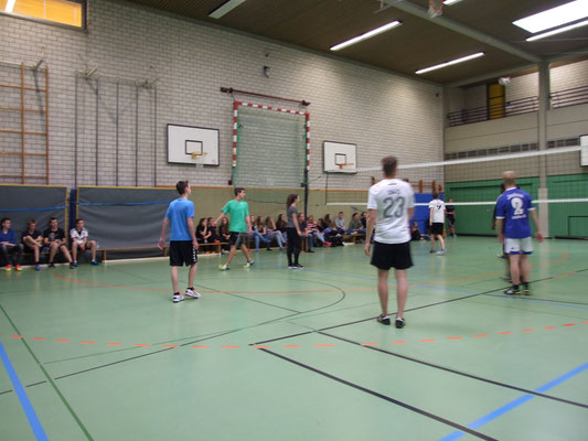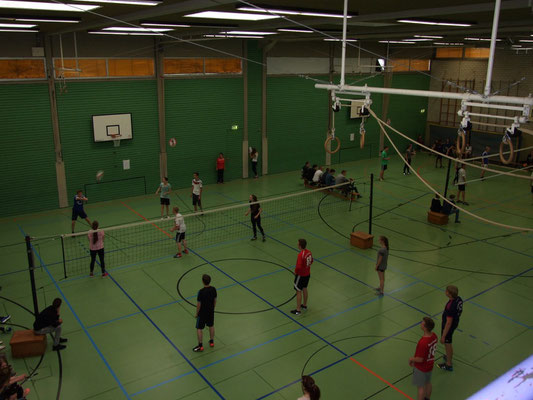 Jede Klasse stellte zwei 6er-Teams, die im Turniermodus "Jeder gegen Jeden" auf zwei Volleyballfeldern gegeneinander antraten.