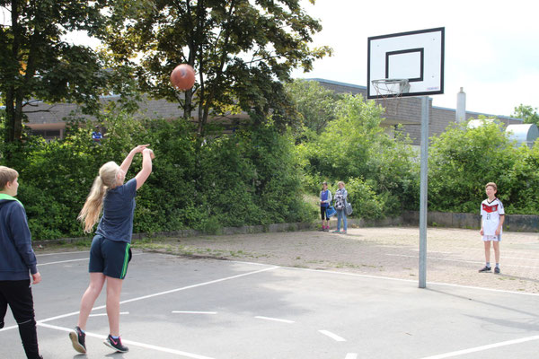 Die Ergebnisse? Also, vorweg sei gesagt, dass in Iserlohn und Schwelm erfolgreiche Jugendmannschaften beheimatet sind, einige der Leistungsträger dieser Mannschaften durften bei diesem Turnier ihr Können zeigen. So kann man trotz der deutlichen Resultate von 9-57 und 9-70 zufrieden sein: Die Mannschaft hat in den beiden Spielen deutlich besser gespielt, als in den vorangegangenen Trainingseinheiten oder in der Sport-AG. Abgerundet wurde diese Fahrt dann noch mit einem Stopp an der Salatbar von McDonalds.Schülerfrage auf der Rückfahrt: "Und wann spielen wir ein Freundschaftsspiel gegen eine andere Schule aus dem HSK?"