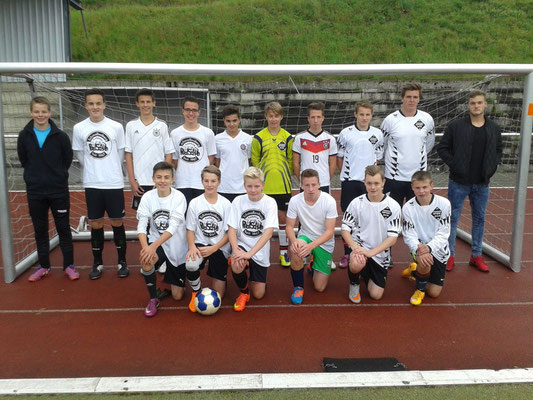 Vordere Reihe von links: Hendrik Langfeld, Baris Balahan, Robin Zimmermann, Maurice Hennemann, Stefan Löhr, Robin Senyüz, Christoph Schürmann und Nick Niederstein. Hinterere Reihe von links: Herr Zelinski-Moore, Christopher Rickert, Julian Föster, Francesco Lattanzi, Martin Kleinsorge, Peter Lumme, Matthias Schulte, Birger Schneider, Herr Beil und Matthias Brüggemann