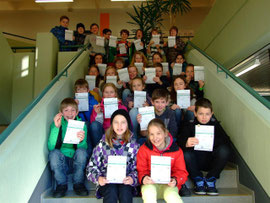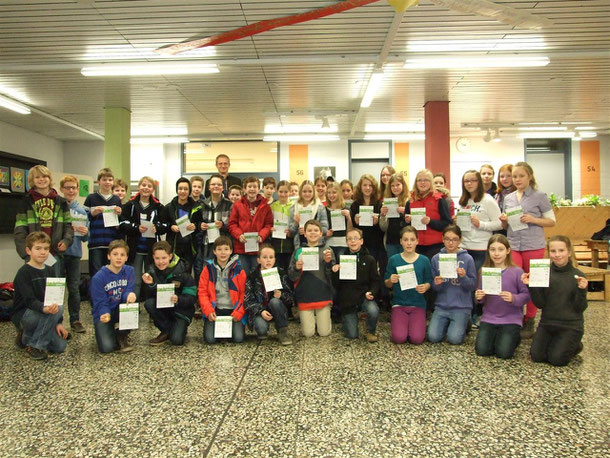 Viele Schüler der jetzigen sechsten Klassen nutzten im Jahr 2012 die Möglichkeit, an der Erich Kästner-Realschule über die Bundesjugendspiele und den Schwimmunterricht ein Sportabzeichen zu erwerben. Die Abzeichen und Urkunden konnten sie in dieser Woche in Empfang nehmen. Unter den 30 Abzeichen waren auch einige silberne und goldene Abzeichen dabei. Die Schüler freuten sich über die Urkunden und die dazugehörigen Abzeichen.