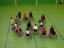 Im Rollstuhlbasketball wurde zuerst der Umgang und das Fahren mit dem Rollstuhl eingeübt, danach wurden Spiele gegeneinander ausgetragen. Neben dem bekannteren Rollstuhlbasketball wurde auch das Spiel Goalball angeboten. Dieser Sport wurde ursprünglich für Sehbehinderte entwickelt. Ziel ist es, durch Gehör und Tastsinn einen mit einer Klingelkugel versehenen Ball in das gegnerische Tor zu befördern. Das Spiel wurde von den Schülern mit verbundenen Augen gespielt.